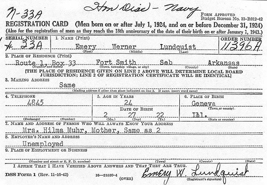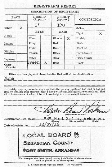 December 27, 1946 Swede registered for the military draft in Fort Smith, Ar. His service