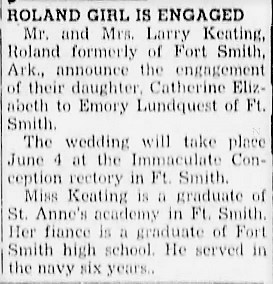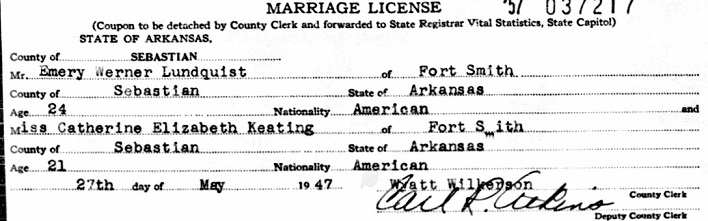 Catherine Elizabeth Keating in Fort Smith, Sebastian Co., Ar where they both resided.