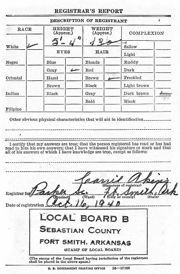 October 16, 1940 Audra registered for the militaty draft in Fort Smith, Ar.