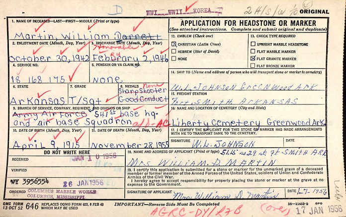 William Darrell Martin passed away November 28, 1955. His burial was in Liberty