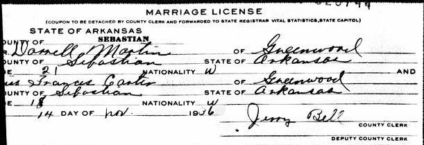 Frances Louise Carter, both being residents of Greenwood, Sebastian Co., Ar.