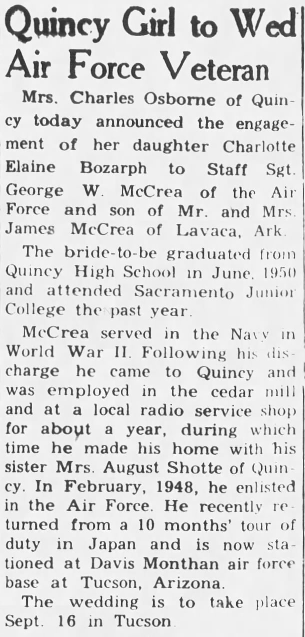 James "Jim" III & Lillie Ann Self McCrea. September 16, 1951