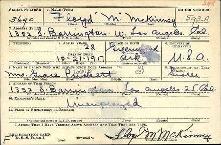 Floyd M McKinney registered for the military draft April 24, 1946 in