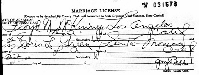 Doris Louise Green in Sebastian County, Arkansas. They both give their place of