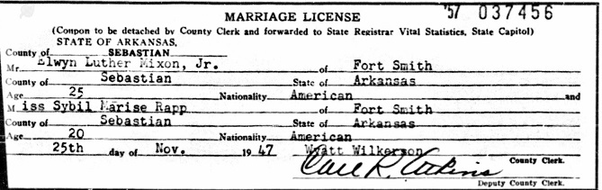 1947 he married Sybil Marise Rapp, both residents of Fort Smith, Sebastian