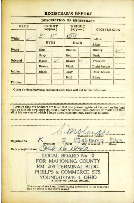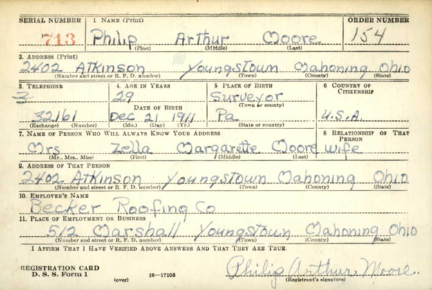 Phillip registered for the military draft October 16, 1940 at