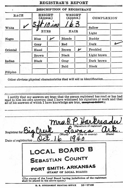 October 16, 1940 Billy registered for the miitary draft at