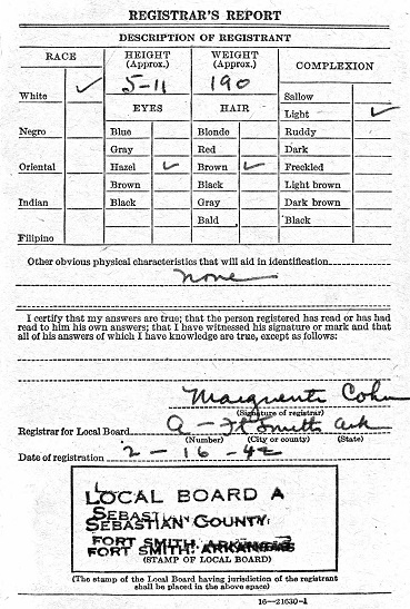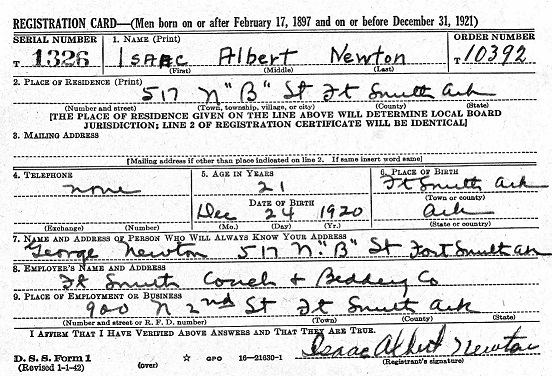 Isaac regristred for the military draft on Feb 16, 1942 at Fort Smith, Ar.