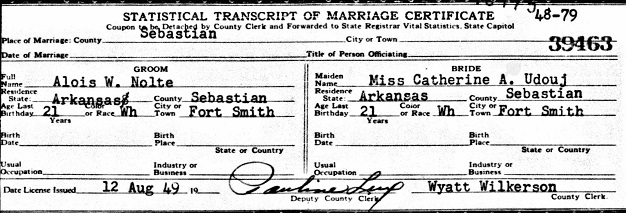 Al and Catherine A. Nolte (Udouj) married on August 13, 1949.