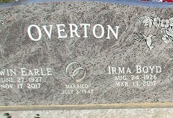 He was preceded in death by his wife Irma, parents and one brother Charles Lingurn Overton.