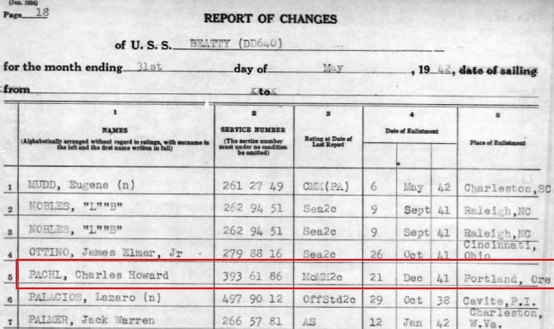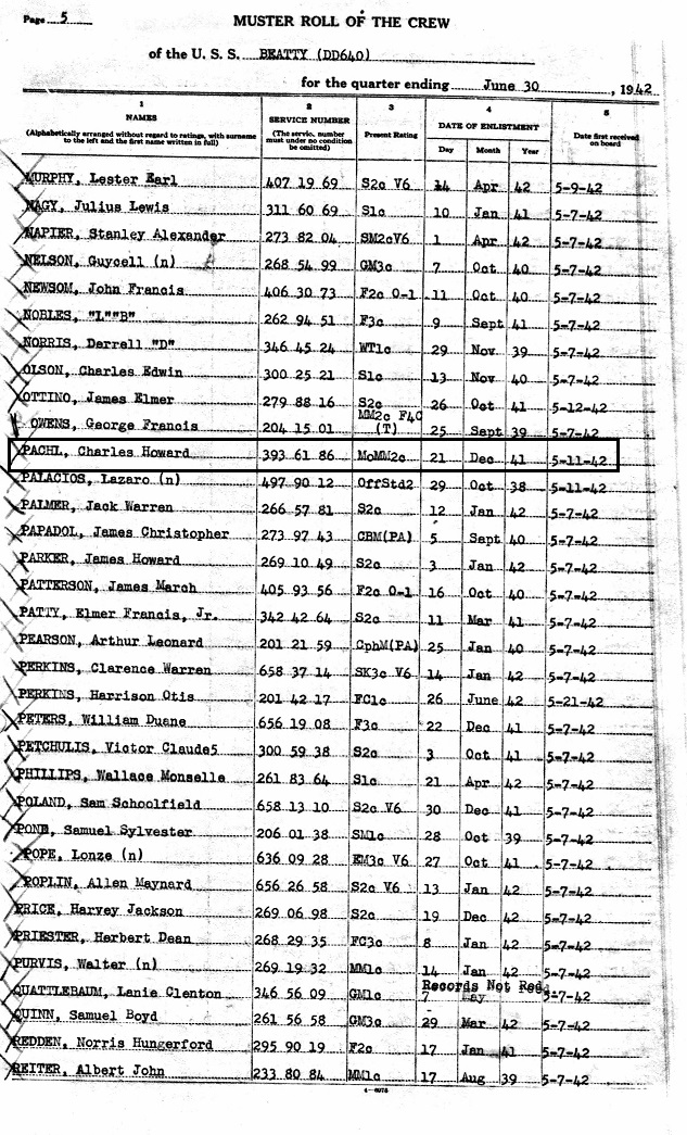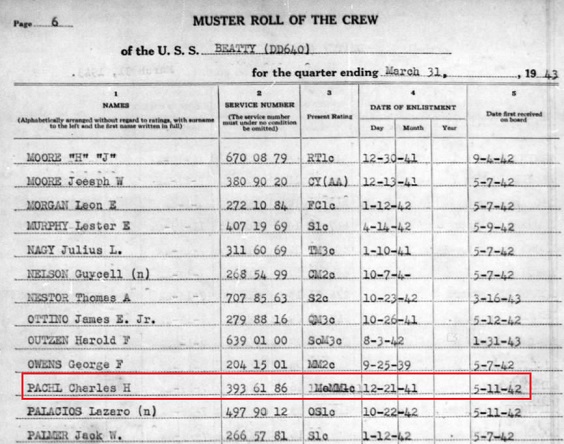 MOMM 2c Pachl was assigned to the USS Beatty I (DD640).