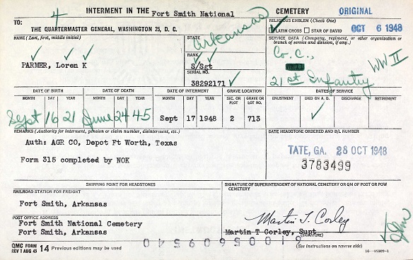Loren Kenneth Parmer 1921 - 1945