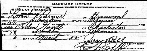 On 6 Mar 1942 Loren married Helen Norvell in Sebastian Co., Ar.