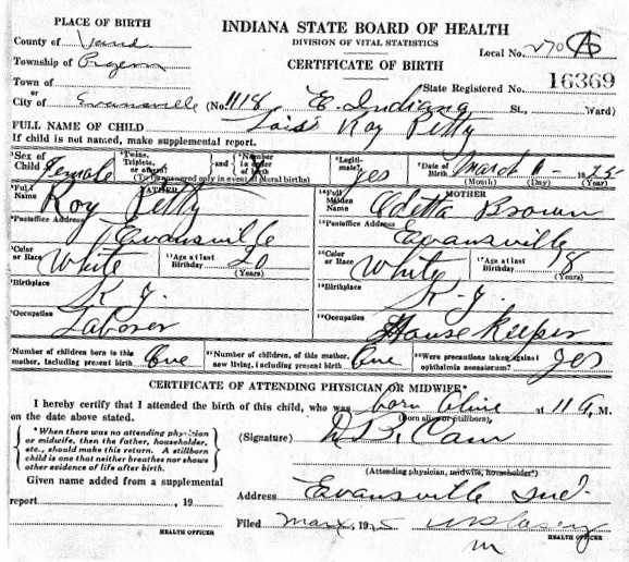 Lois Ray Petty was born March 1, 1925 in Evansville, Indiana to