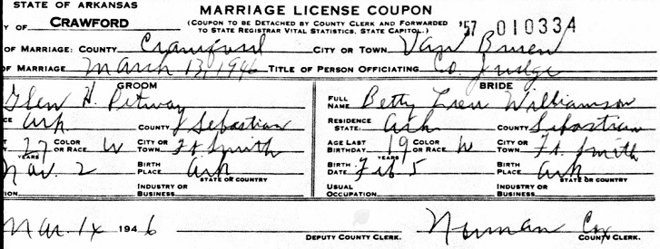On March 13 or 14, 1946 Glen married Betty Louise Williamson