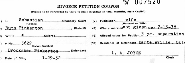 January 29, 1952 Brookshire and Ruth were divorced. He was residing
