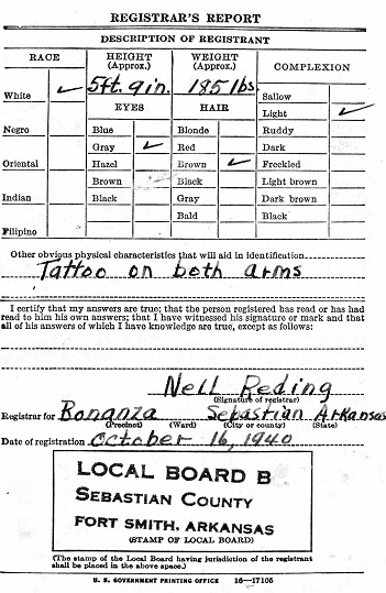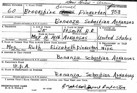 Brooks registered for the draft October 16, 1940 at Bonanza, Sebastian Co., Ar.