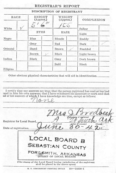 Miller registered for the miitary draft June 30, 1942 at Fort Smith, Sebastian Co., Ar.