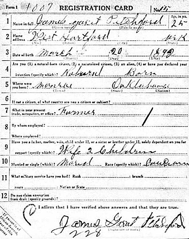 James Garrett Pitchford, Jr enlistment papers dated Aug 17, 1943 in Little Rock, Ar.