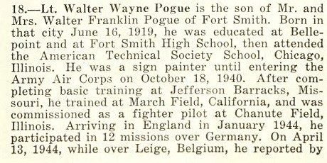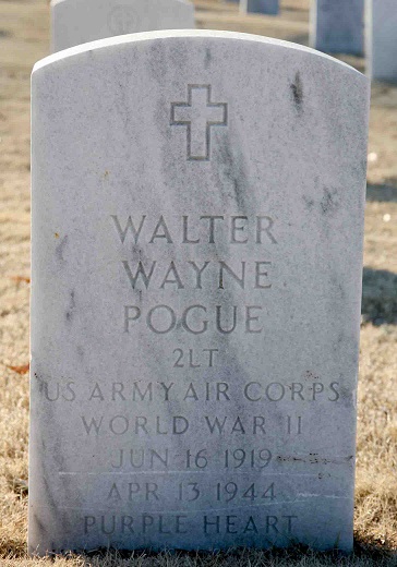 Walter Wayne Pogue was killed in action April 13, 1944 over Leige, Belgium,