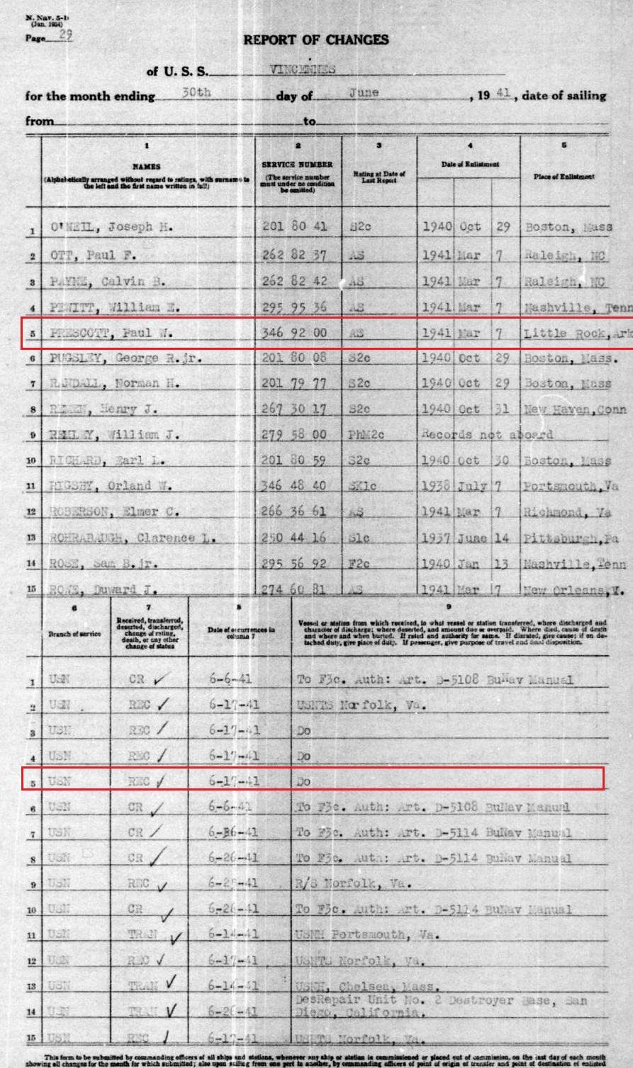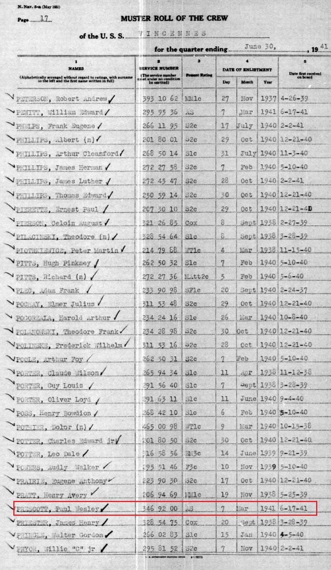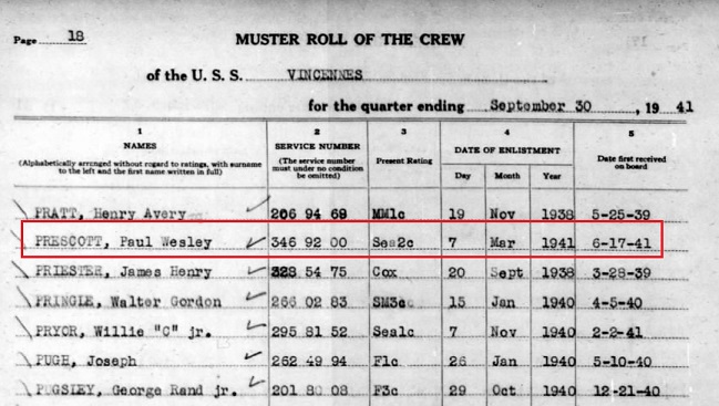 Paul enlisted in the US Navy Mar 7, 1941. Seaman 1 class Prescott