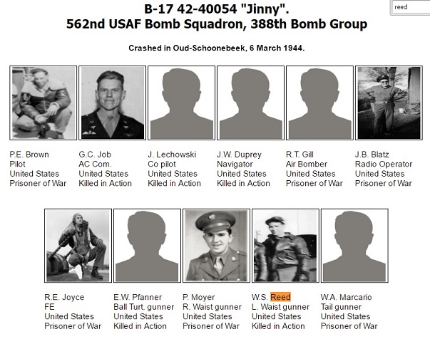 On 6 Mar 1944 S/Sgt Reed was killed after a bomb run. On the return route, in the vicinity of Quakenbruck,
