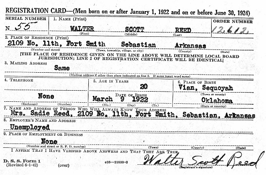 Walter enlisted in the US Army Air Corps at Little Rock, Arkansas on 12 November 1942. He was noted, at the time