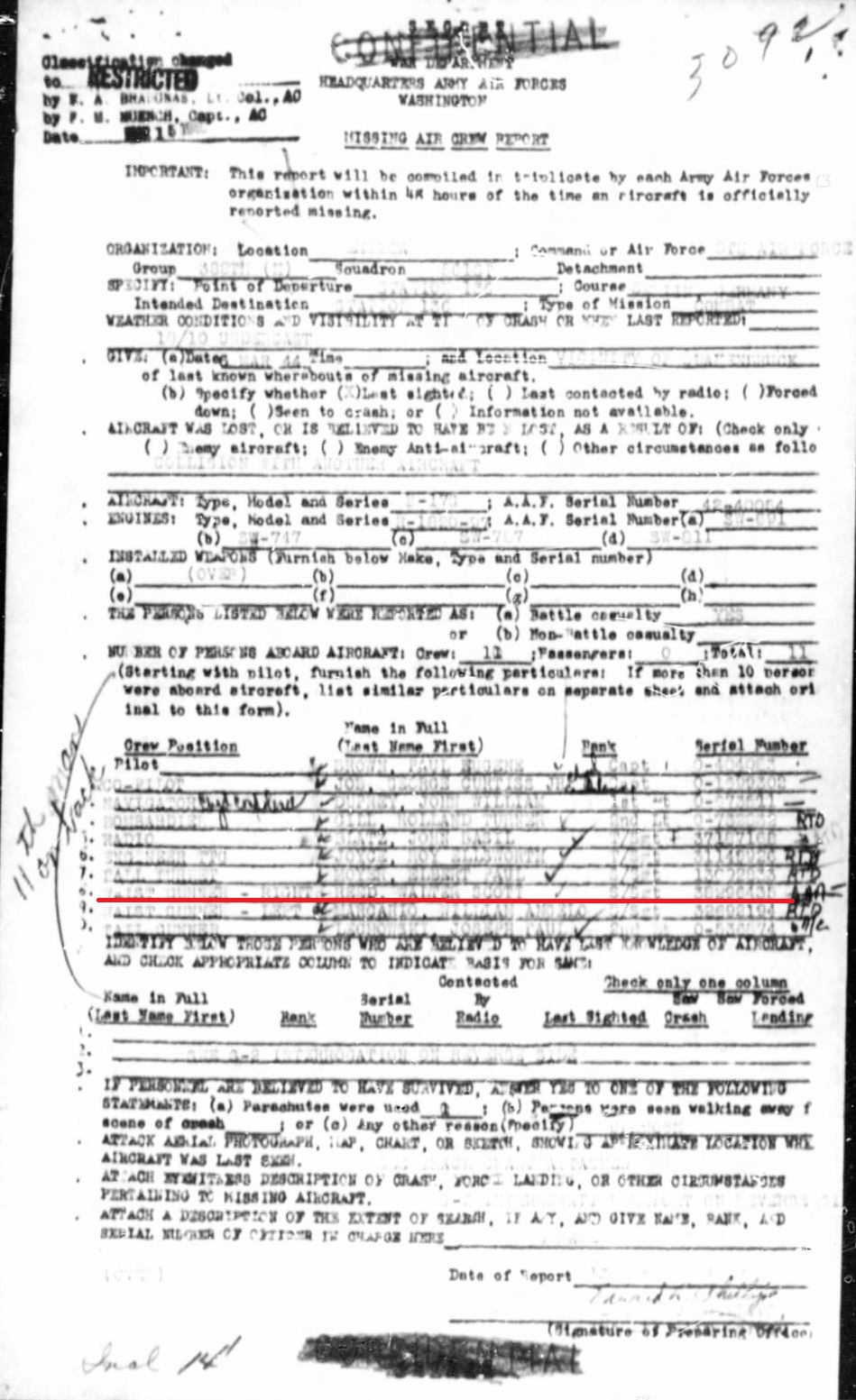 S/Sgt Walter Scott Reed was assigned to the 388th Bomber Group, Heavy, 561st Bomber Squadron as a Right Waist Gunner.