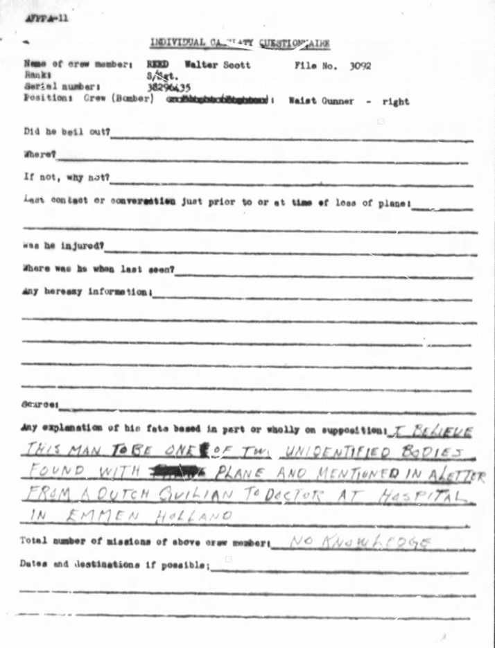S/Sgt Walter Reed was killed along with four other crew members.