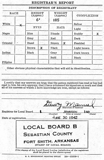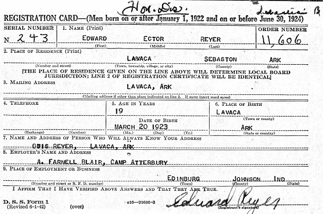 June 30, 1942 Edward registered for the military draft at Fort Smith, Sebastian Co.,