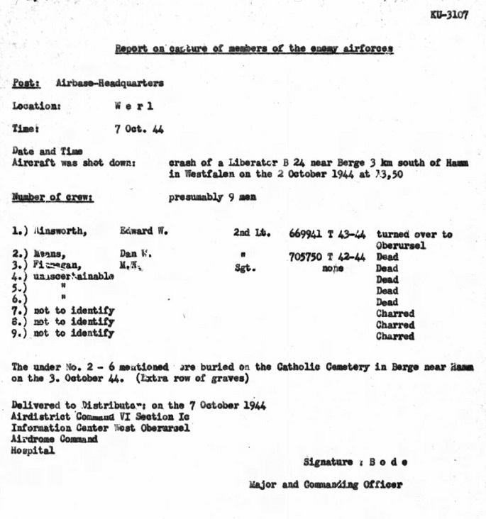 One crew member was captured by the enemy and all the others were dead from the crash.