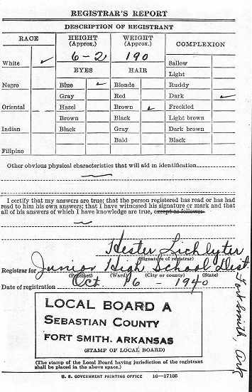 On the 16th of October 1940 Howell registered for the military draft at the Junior High