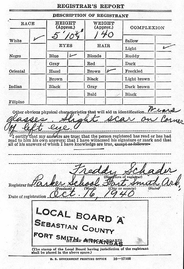 John registered for the military draft at Parker School in Fort Smith, Sebastian