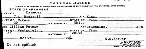 On October 17, 1936 in Carroll Co., Arkansas John married Lillian May