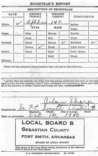 On October 16, 1940 William registered for the military draft at Sebastian Co. Arkansas. On