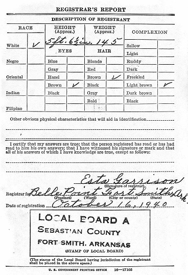 Vachel registered for the military draft October 16, 1940 at Belle Point School in