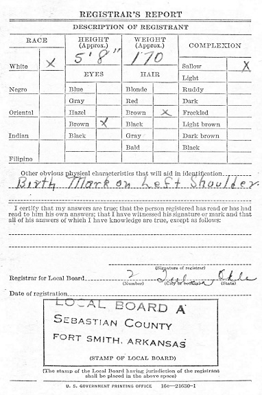 his records. He was living at 11 1/2 No. 18th St., at Fort Smith, Sebastian