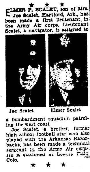 Joseph Scalet was born in 1918 at Hartford, Sebastian Co., Ar. to