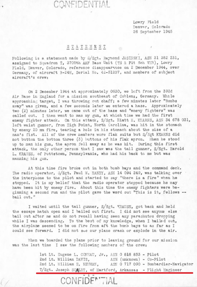 TSGT Joseph "Joe" Scalet was attached to the 577 Bomb