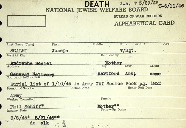 TSGT Scalet was buried in 1948 & this date was placed on his memorial.