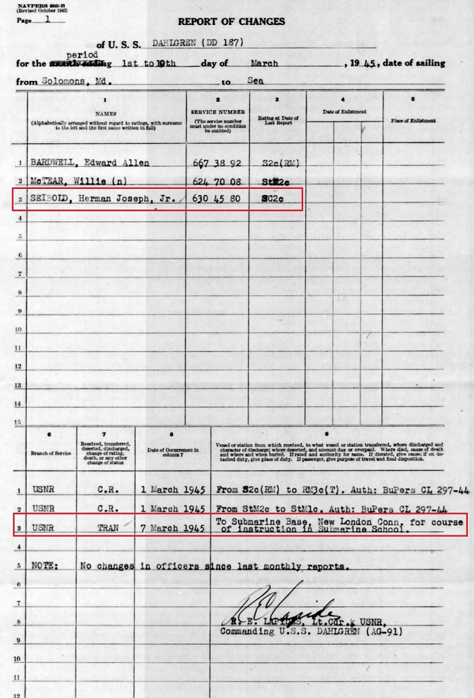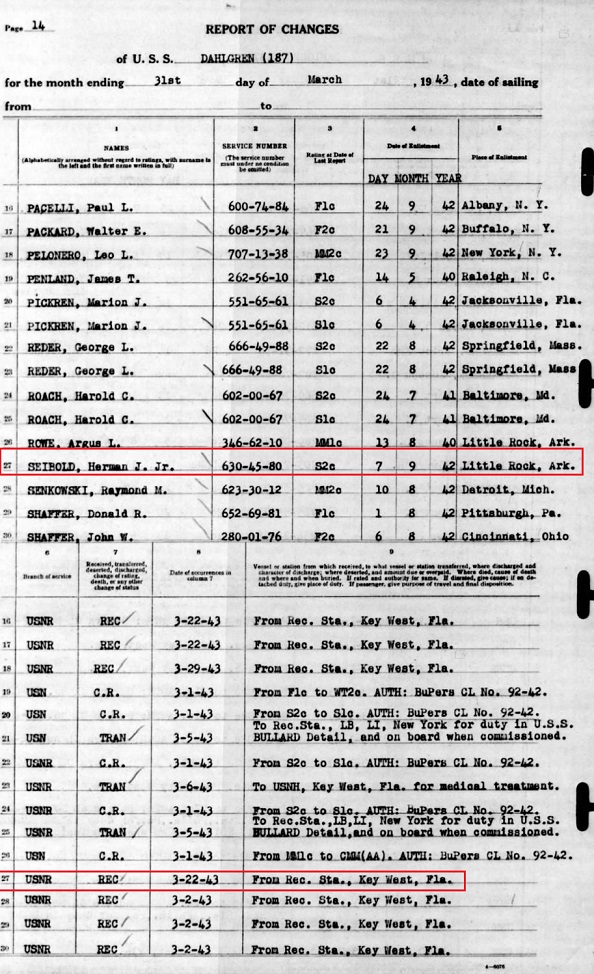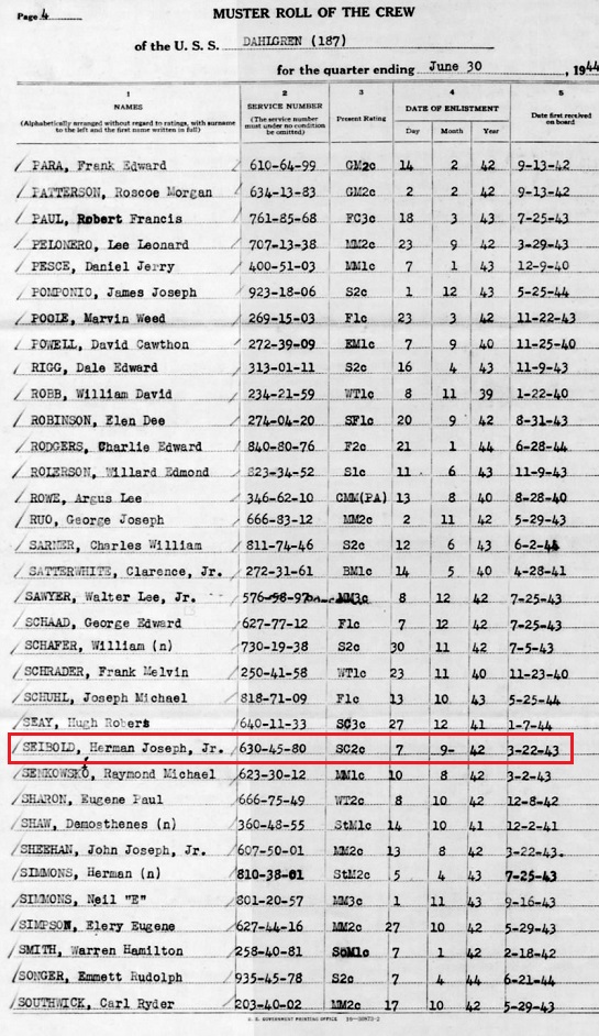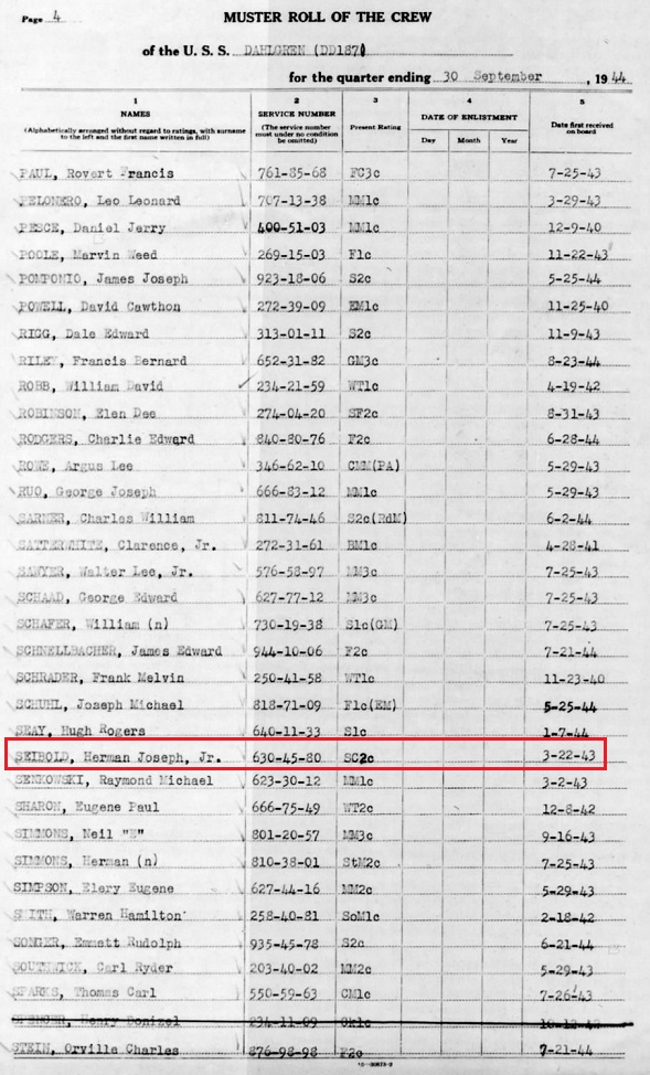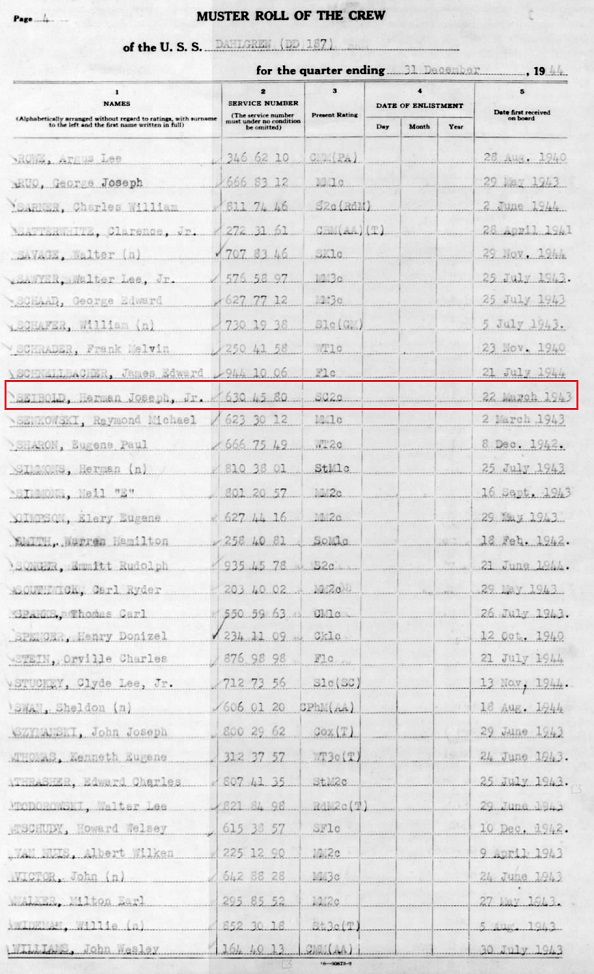 Herman enlisted with the US Navy and was assigned to the USS Dahloren.