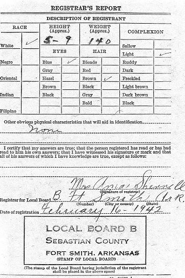 Feb 16, 1942 Herman registered for the military draft at Fort Smith, Sebastian County, Ar.