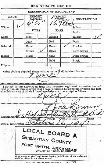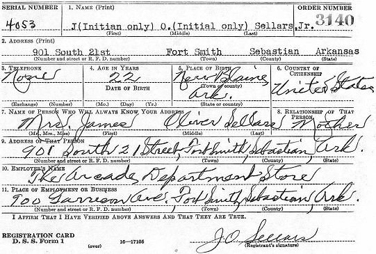 J. O. Sellars, Jr. registered for the military draft October 16, 1940 at