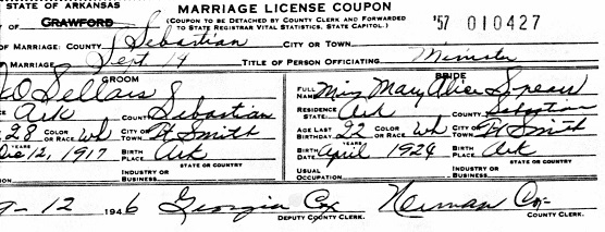 married Mary Alice Spears in Fort Smith, Sehastian Co., Ar..