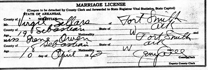 Virgil Lewis Sellers was born April 8, 1923 Fort Smith, Sebastian Co., Ar. to