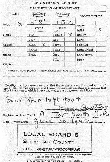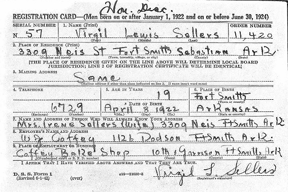 June 30, 1942 Virgil registered for the draft in Fort Smith, Ar. Dec 11, 1942 Virgil