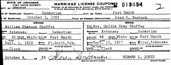 According to a divorce filing record by Goldia Gray Shoffey dated June 19, 1963
