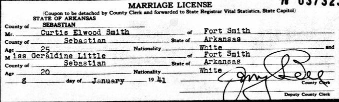 married Geraldine Emily "Jerry" Little in Fort Smith, Ar.