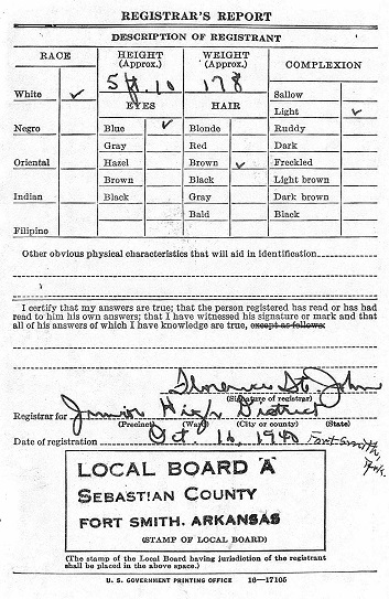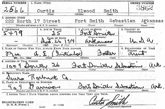 October 14, 1940 at the Fort Smith Junior High School Curtis registered for the
