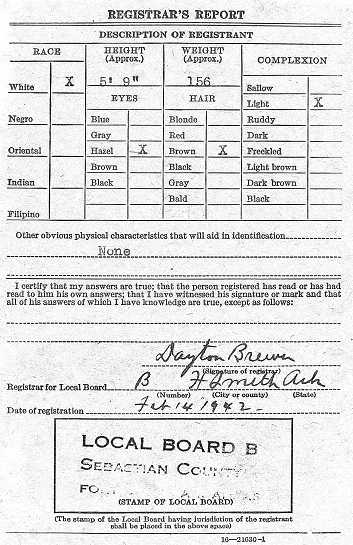 Feb 14, 1942 L. J. registered for the draft in Big Creek, Sebastian Co.Ar.